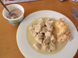 Mittags dann gab es Putenbrust, und dazu eben mein Experiment. Eigentlich hätten das Räucherfischnockerl werden sollen, aber ich musste das ursprüngliche Rezept abändern und sie wurden ein wenig zu weich, sodass ich dann eher Räucherfischmus hatte. :)