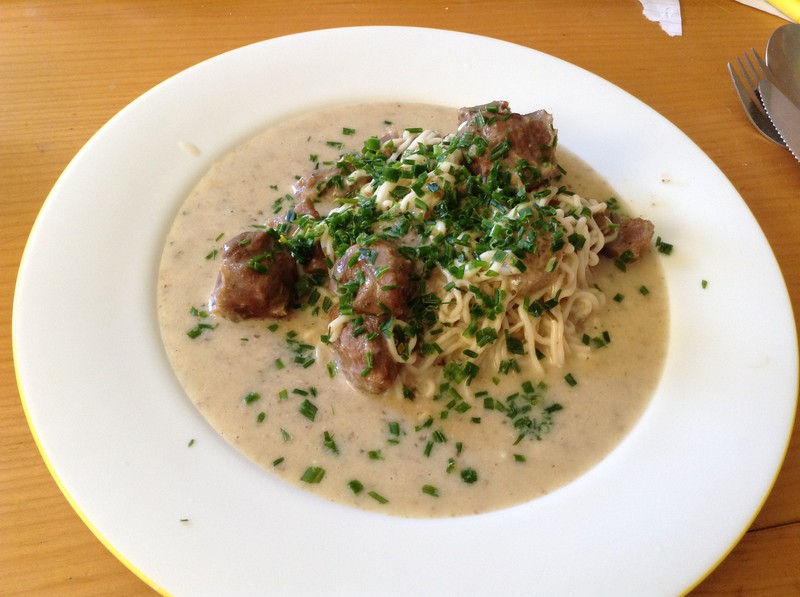 Gottseidank hatte ich deswegen aber mal wieder jede Menge Zeit übrig, um etwas langwieriges wie Gulasch zu kochen. Und das gabs heute zu Mittag aus Rind, dazu Shiratakinudeln und als Krönung noch Schnittlauch drüber: