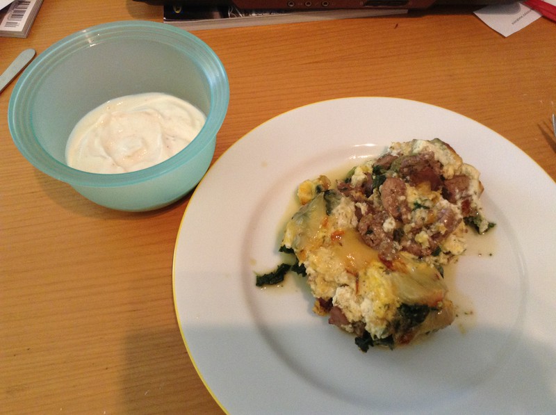 Das Abendessen sah nicht viel anders aus, denn es gab die andere Hälfte des Auflaufs. Ich hab ihn nochmal in den Ofen geschoben und so wurde er noch herrlich knusprig: