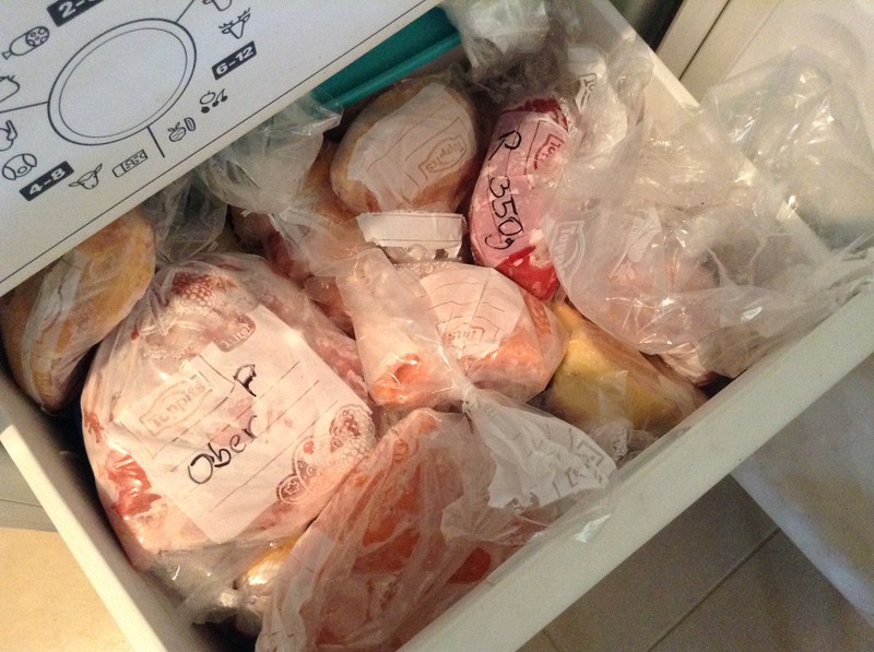 Kaum etwas, das ich esse ist tatsächlich frisch, das meiste hole ich nämlich immer am Abend zuvor aus meinem Gefrierschrank, so sieht das da aus: