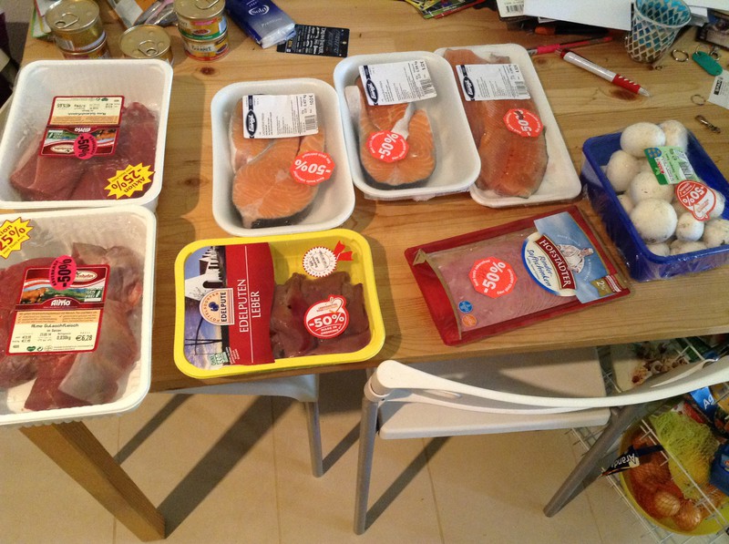 Das sind alles Dinge, die heute oder morgen ablaufen und deswegen nur die Hälfte kosten. Das ist fast alles jetzt, wo ich den Beitrag schreibe, schon längst im Gefrierschrank verschwunden.